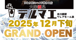 大衆酒泉テルマエ本川越駅クレアモール泉が12月下旬グランドオープン決定!!